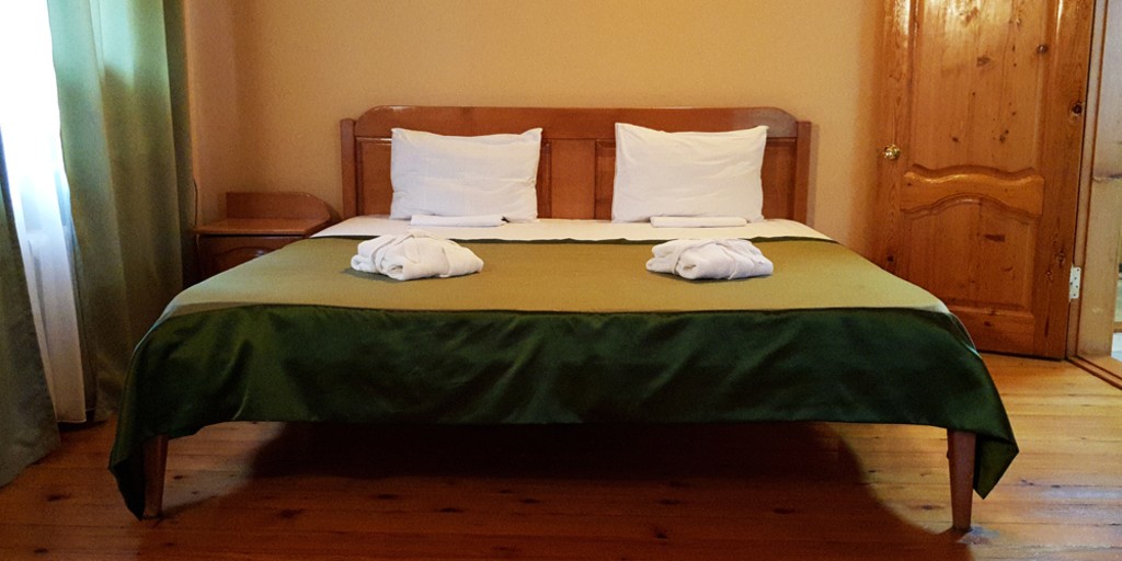 Однокомнатный номер, кровать 2х2м, кондиционер, телевизор, душ-кабина, холодильник, фен, гель для душа, шампунь, набор полотенец для рук, ног и банное.